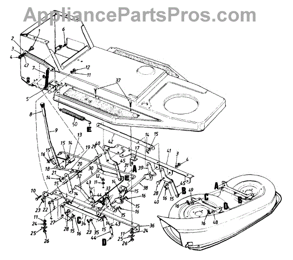 This genuine OEM replacement deck lift link is used on lawnmowers, and tractors. The lift link attaches to the front of the mower deck and to the bracket under the front axle of the mower. The deck lift link aids in leveling the deck as it is lifted up and down. Over time, the original deck lift link may wear down and break. A sign of this issue could be the mower is cutting unevenly. When this link fails, the deck will become uneven and may fall altogether. It will be visually noticeable when looking at the deck while off the mower. Make sure the old link did not fall off in the yard, as it may be a hazard. Replacing the deck lift link is an intermediate job and will require 30 minutes or more. The tools needed are a socket wrench and needle nose pliers. The fuel tank may also need to be removed from the mower in order to access the suspension arm.This replacement deck lift link is compatible with MTD, Yard Machines, and Husky brands. This lift link is sourced directly from the manufacturer and is sold individually.