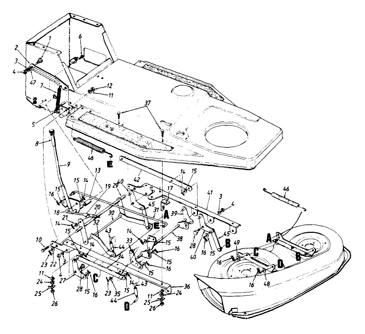 Shoulder screw fastener for lawn and garden equipment. Holds components in precise position with unthreaded shoulder design. Replace if damaged or missing.