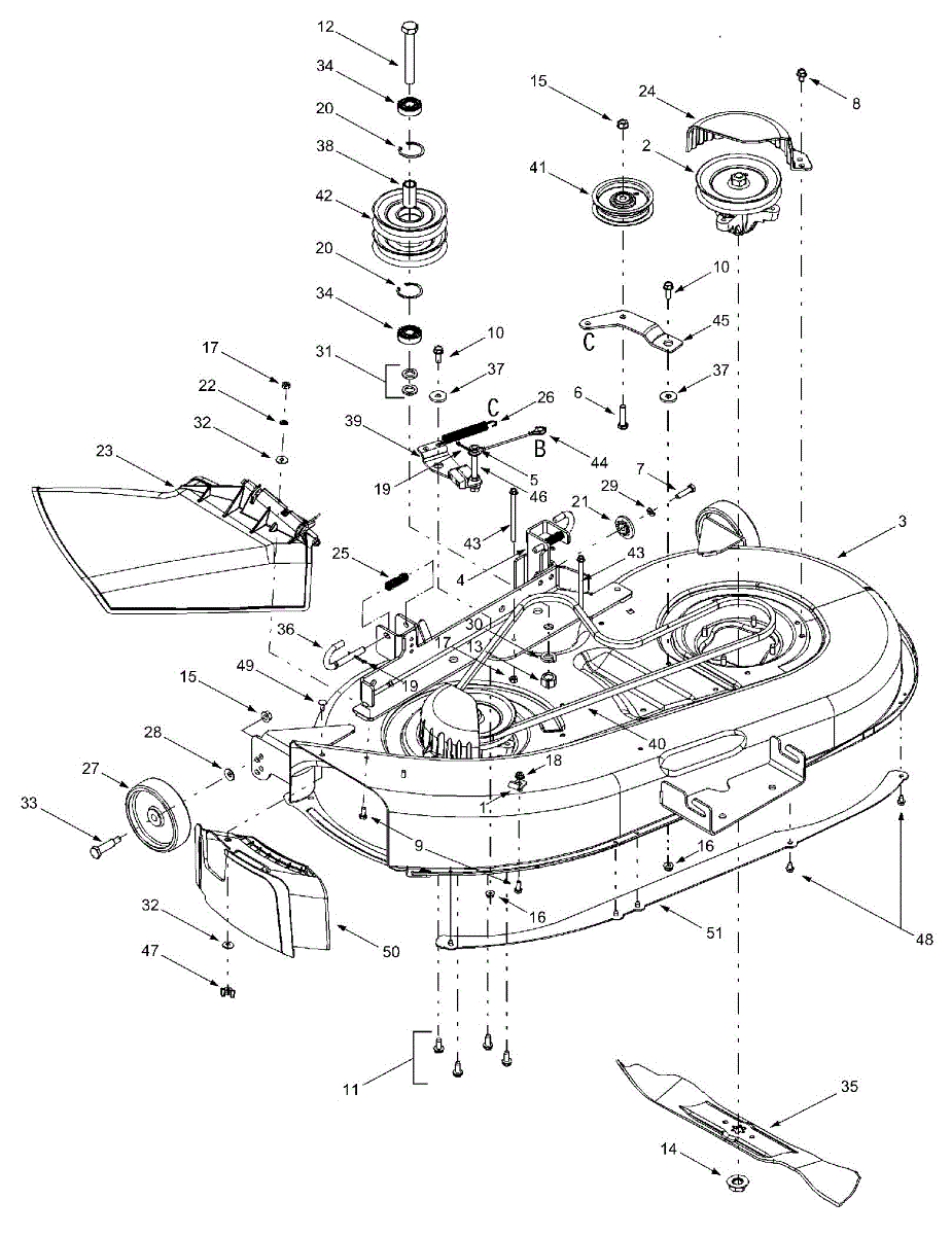 Deck release pin secures the mower deck to the tractor frame. Replace if bent, broken, or missing to properly attach and support your cutting deck assembly.