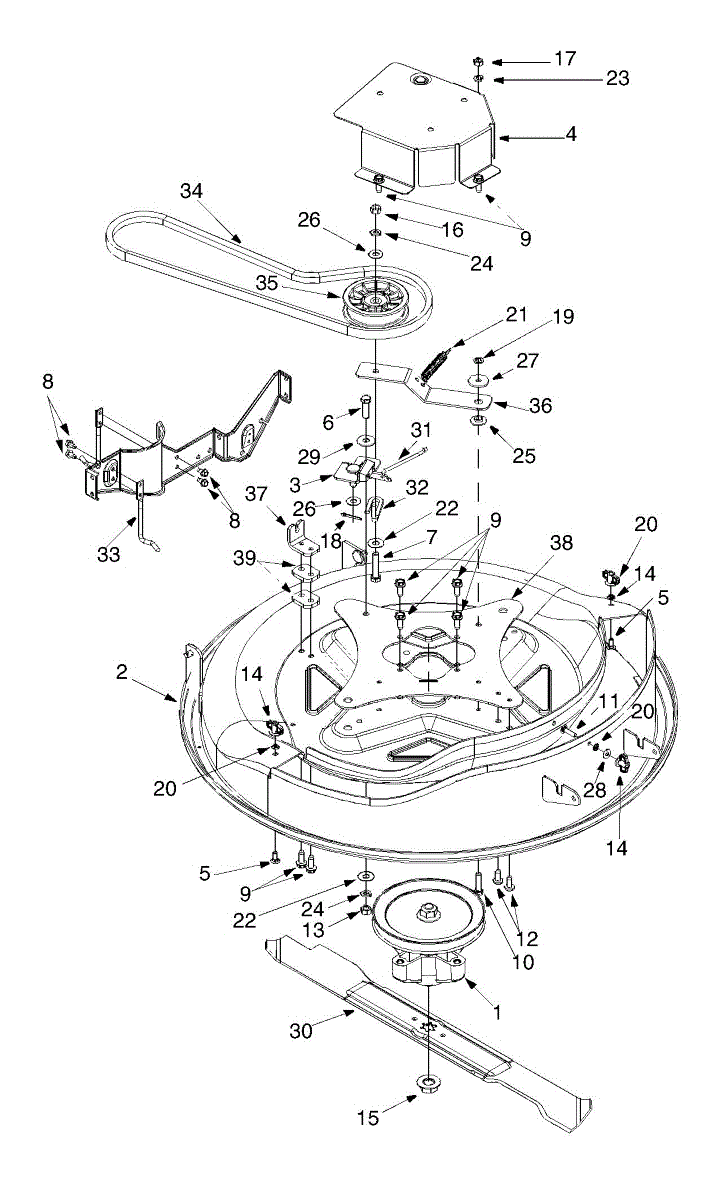 Hex screw fastener for securing lawn mower components. Replace if stripped, rusted, or missing to ensure proper assembly and equipment stability.