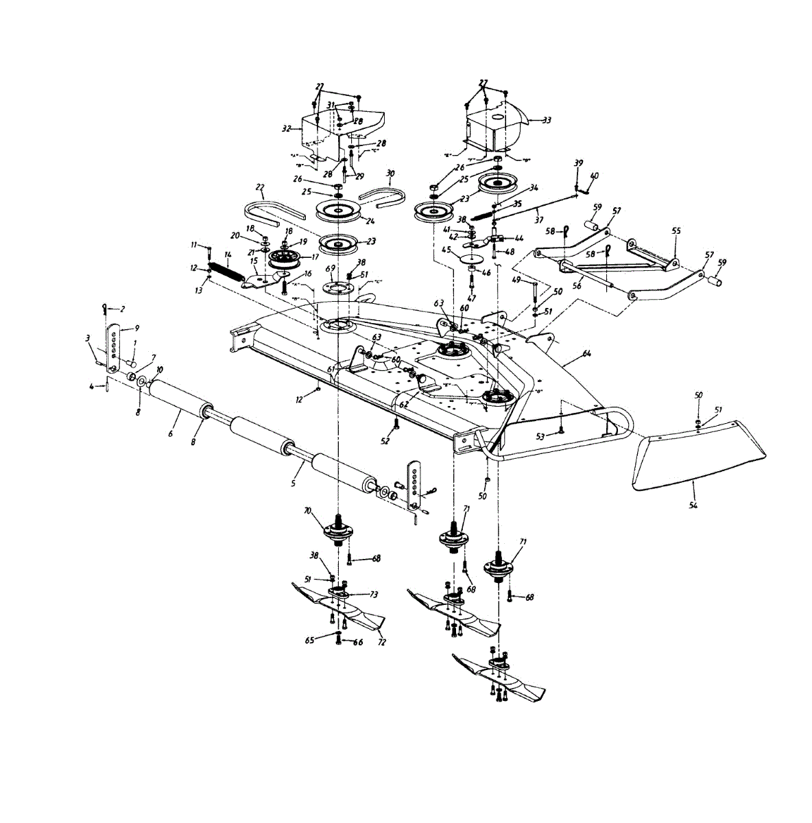 Replacement hex bolt for outdoor power equipment. Secures components throughout mowers, tractors, blowers, and tillers. Replace if missing or stripped.