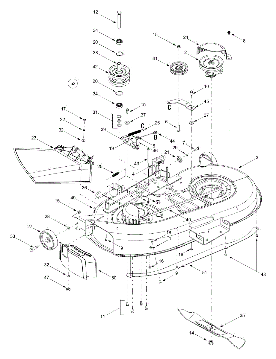 Deck release pin secures the mower deck to the tractor frame. Replace if bent, broken, or missing to properly attach and support your cutting deck assembly.