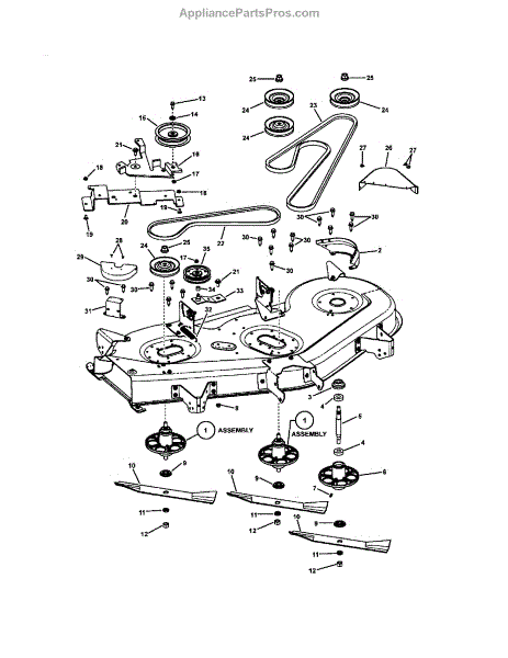 Parts for Snapper 7800317: 52" Deck Blade Drive Parts