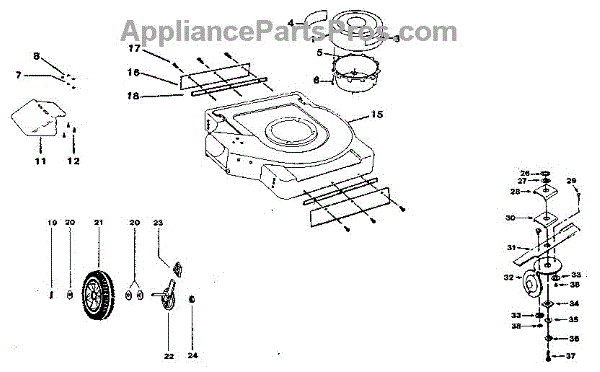 Parts for Craftsman 663913841: 19" Deck Deluxe Parts