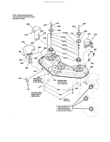 Parts for Craftsman 107250050: 46" Deck-Housing / Arbors / Blades Parts