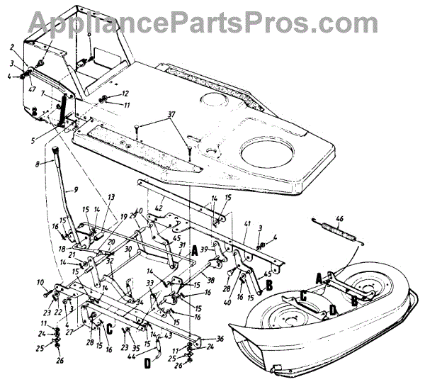 Front deck lift link for lawn tractors. Connects mower deck to front axle bracket for smooth deck height adjustment. Replace if bent, damaged, or worn.
