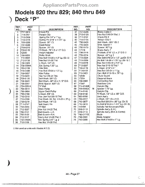 Parts for Mtd 820 THRU 829: Deck P Page 2 Parts
