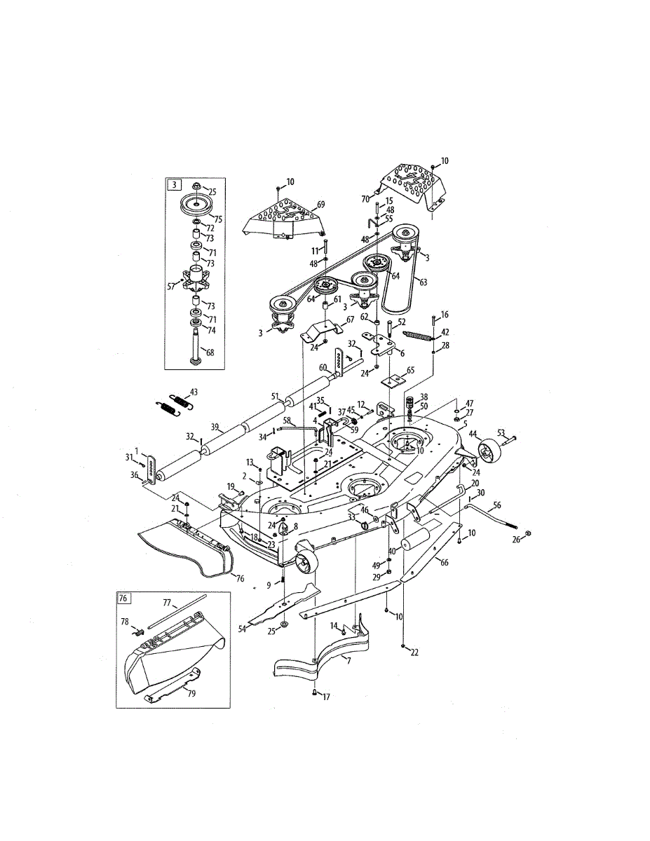Idler mandrel pulley kit for lawn tractor mower decks. Includes pulley, spacer, and bushing. Replace if bearing is damaged, broken, or lost.