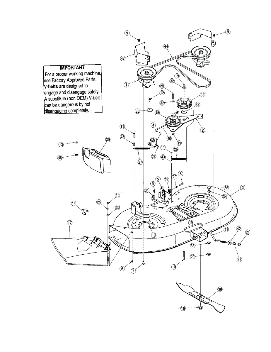 Replace a worn deck brake assembly causing poor blade stopping or unsafe mowing. Fits 42-inch decks on many front-engine lawn tractors. Moderate DIY.