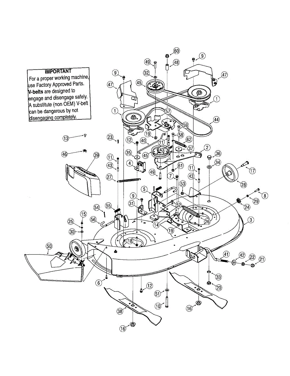 Replace a worn deck brake assembly causing poor blade stopping or unsafe mowing. Fits 42-inch decks on many front-engine lawn tractors. Moderate DIY.