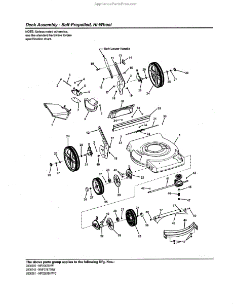 Parts for Murray 7800258: Deck - Self-Profelled, Hi Wheel Parts
