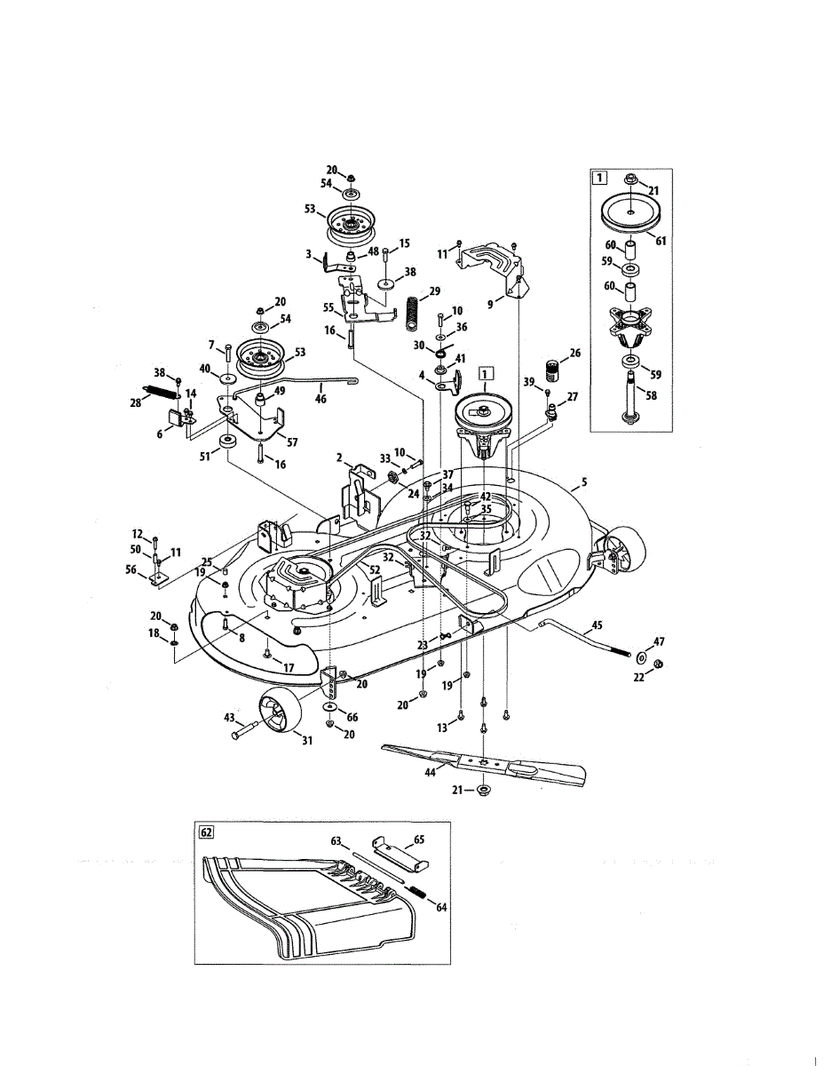 Mulching kit for 46-inch lawn tractor decks. Converts mower to mulch grass clippings. Replace missing, damaged, or worn mulch blades and plugs.