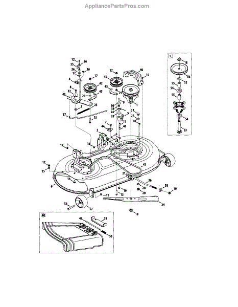 The deck assembly, also called a deck housing, is intended for use with lawn tractors. The purpose of the component is to provide housing for the blades on the lawn tractor. This helps to keep the blades and part of the underside of the tractor safe from damage that could occur when it is in use. It also ensures that the blades stay in place.This part could be damaged when running over rocks or branches. It could be cracked, blunted, or broken. If the piece does need to be replaced, allow the machine to cool and disconnect the spark plug wires before beginning any repairs.This large piece is sold individually and can work with select tractors from MTD, Yard Machines, and Craftsman. It is a genuine OEM replacement part.