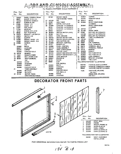 Parts for Whirlpool LVA9920W0: 05 - Decorator Front Parts