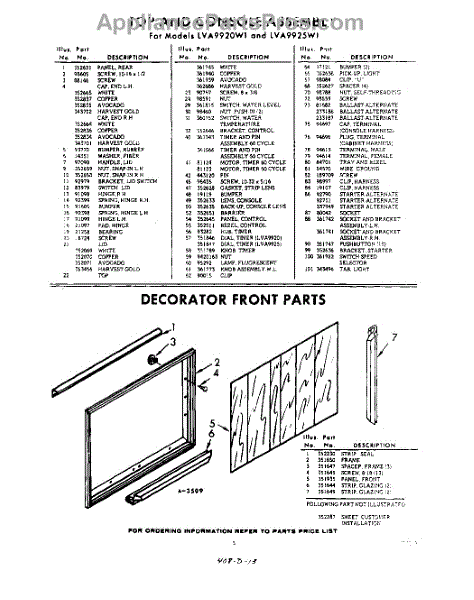 Parts for Whirlpool LVA9920W1: 05 - Decorator Front Parts