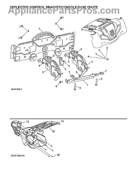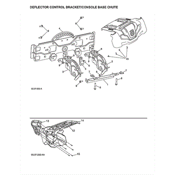 Parts for Husqvarna ST224-97046850101: Deflector Control Bracket / Console Base Chute Parts