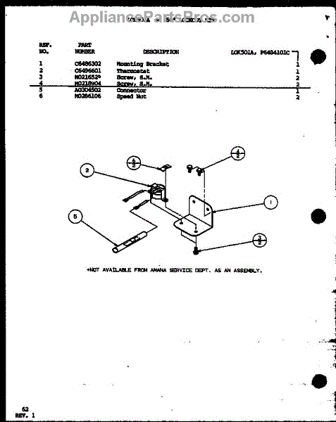 Parts for Amana SPCG420901A/P9999401C: 50 Degrees Lockout Kit Parts