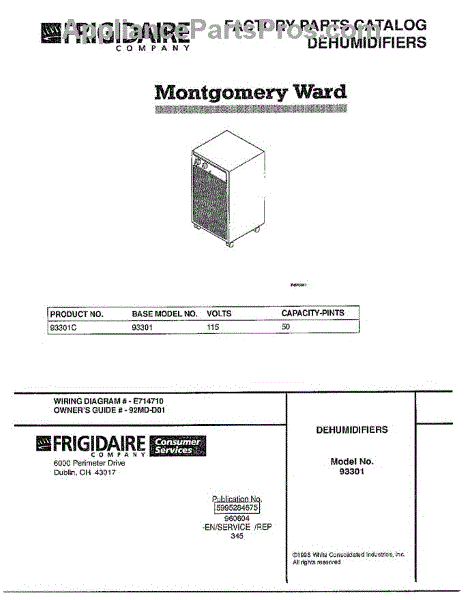 Parts for Frigidaire 93301C: Dehumidfiers Parts