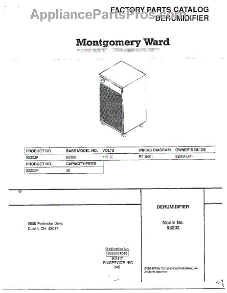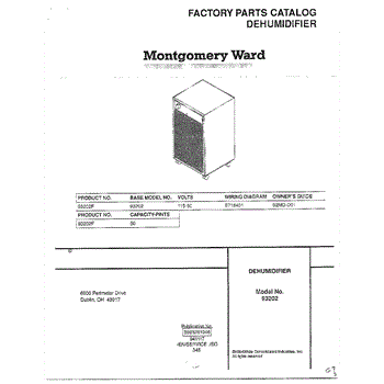 Parts for Frigidaire 93202F: Dehumidifier Cover Page Parts