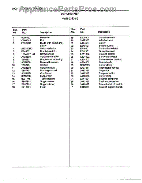 Parts for Frigidaire 93506-2: Dehumidifier Page 4 Parts