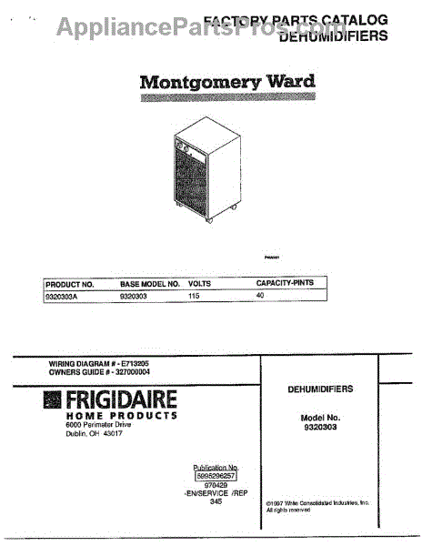 Parts for Frigidaire 9320303A: Dehumidifier Parts