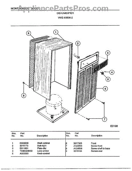 Parts for Frigidaire 93506-2: Dehumidifier Parts