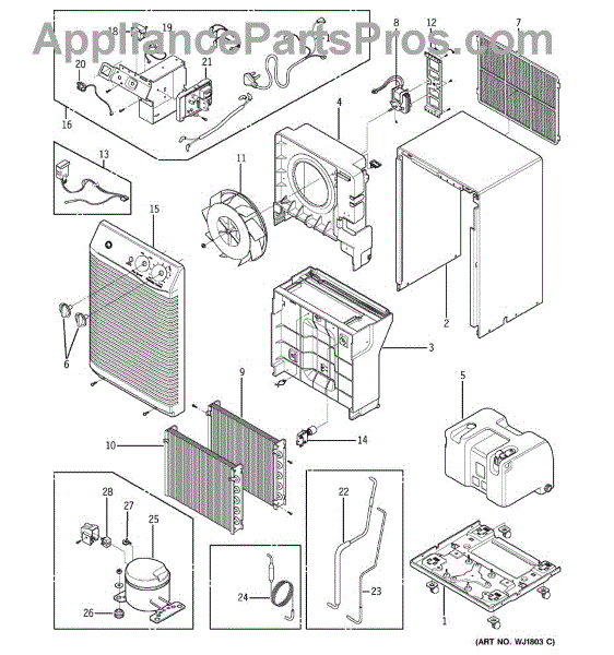 Parts for Ge AHG30LBG1: 01 - Dehumidifier Parts