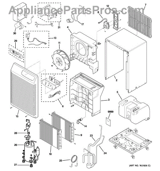 Parts for Ge AHG50LEG1: 01 - Dehumidifier Parts