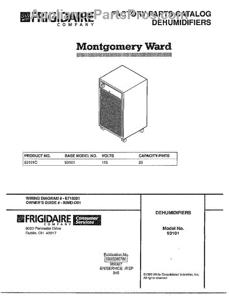 Parts for Frigidaire 93101C: Dehumidifiers Parts