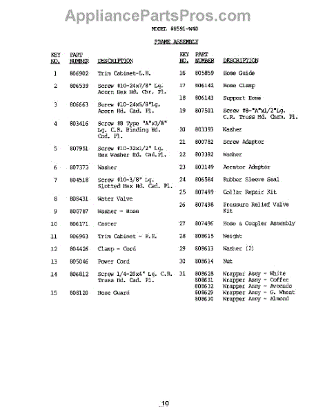 Parts for Whirlpool 8591W40: 11 - Detergent Cup Parts