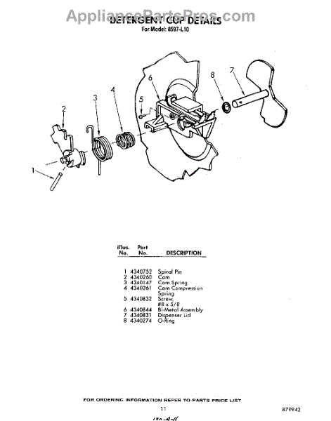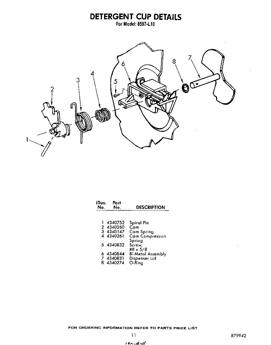 Parts for Whirlpool 8597L10: 11 - Detergent Cup Parts