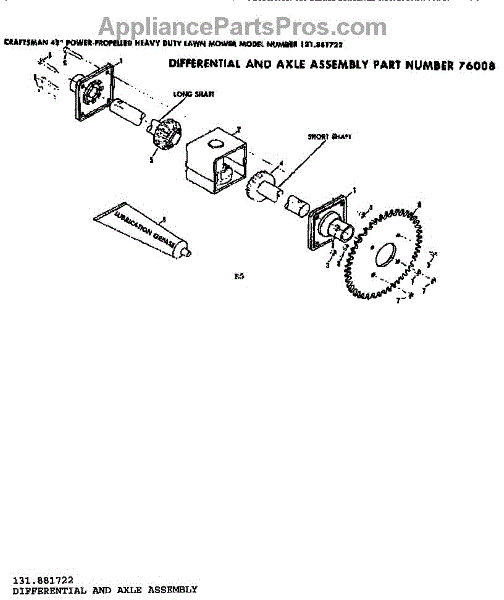 Parts for Craftsman 131881722: Differential And Axle Assembly Parts