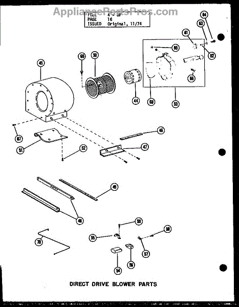 Parts for Amana GH160E-R4/P96324-30F: Direct Drive Blower Parts (Gc65df-2 / P96331-12F) (Gc80df / P96331-13F) (Gc80df-3 / P96331-14F) (Gc105df / P96331-15F) (Gc105df-3 / P96331-16F) (Gc120df / P96331-17F) (Gc120df-3.5 / P96331-18F) (Gc140df-4 / P96331-19F) Parts