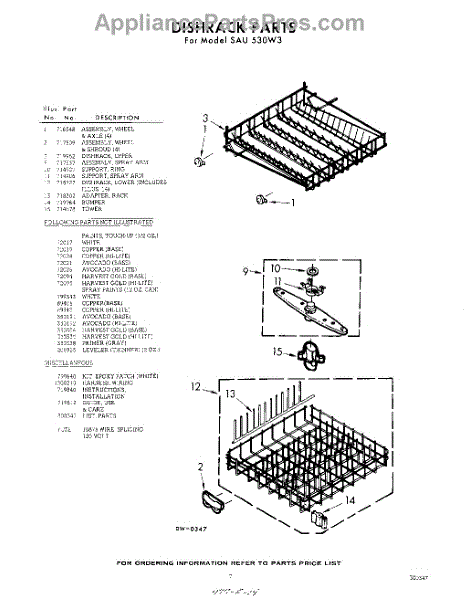 Parts for Whirlpool SAU530W3: 07 - Dish Rack , Lit / Optional Parts