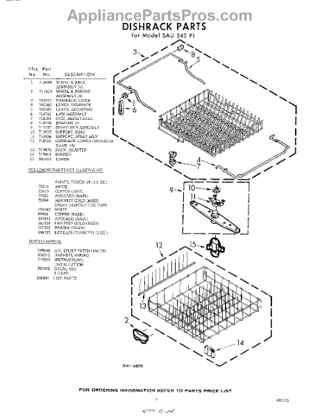 Parts for Whirlpool SAU540P1: 07 - Dish Rack , Lit / Optional Parts