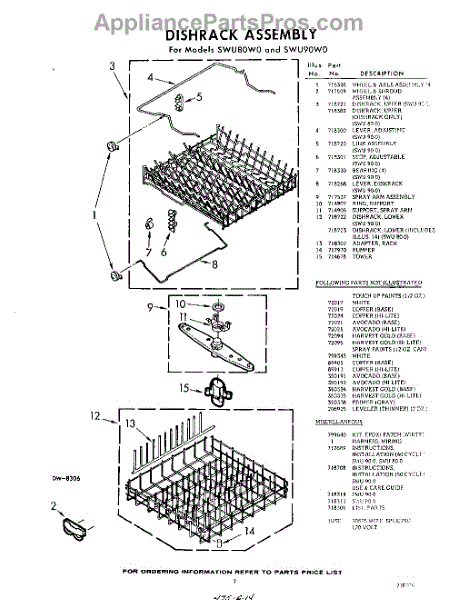 Parts for Whirlpool SWU80W0: 07 - Dish Rack , Lit / Optional Parts
