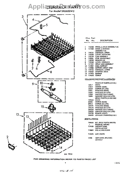 Parts for Whirlpool SXU600W2: 07 - Dish Rack , Lit / Optional Parts