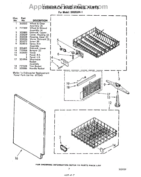 Parts for Whirlpool SHU55041: 07 - Dish Rack And Panel Parts
