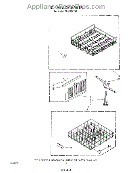 Parts for Whirlpool DP8500XTN2: 05 - Dish Rack Parts