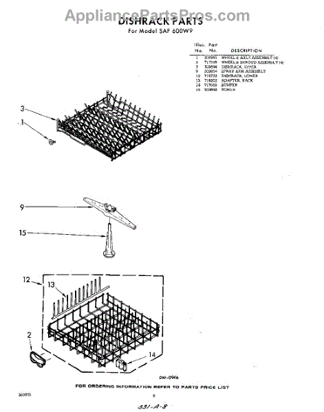 Parts for Whirlpool SAF600W9: 08 - Dish Rack Parts