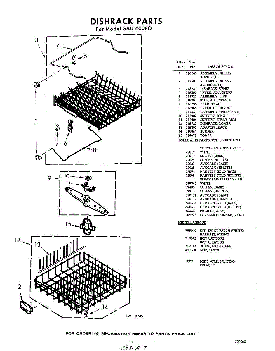 Parts for Whirlpool SAU600P0: 07 - Dish Rack Parts