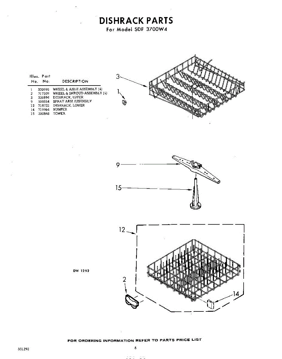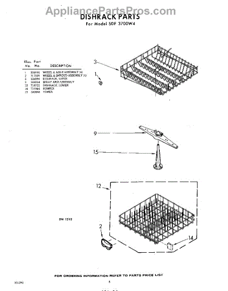Parts for Whirlpool SDF3700W4: 08 - Dish Rack Parts
