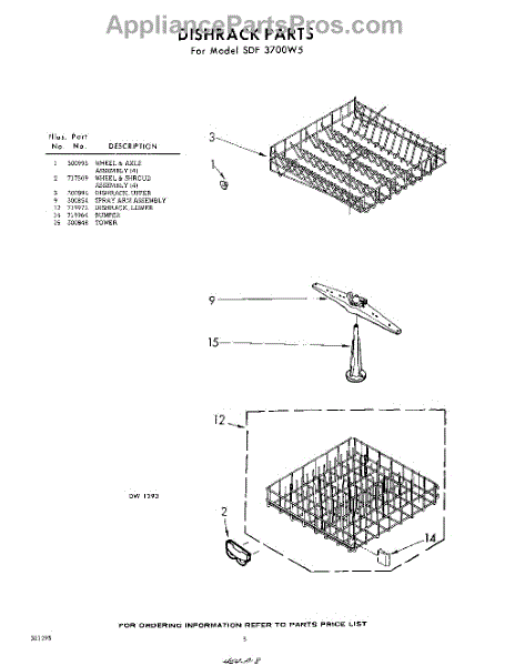 Parts for Whirlpool SDF3700W5: 08 - Dish Rack Parts