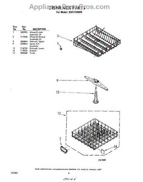 Parts for Whirlpool SDF3700W6: 08 - Dish Rack Parts