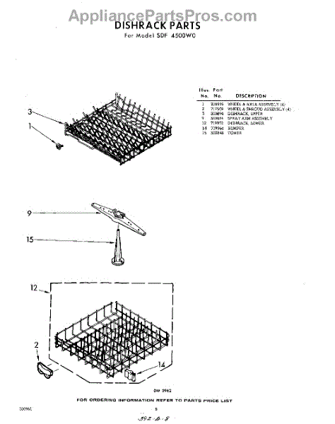Parts for Whirlpool SDF4500W0: 08 - Dish Rack Parts