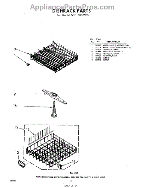 Parts for Whirlpool SDF5000W0: 08 - Dish Rack Parts
