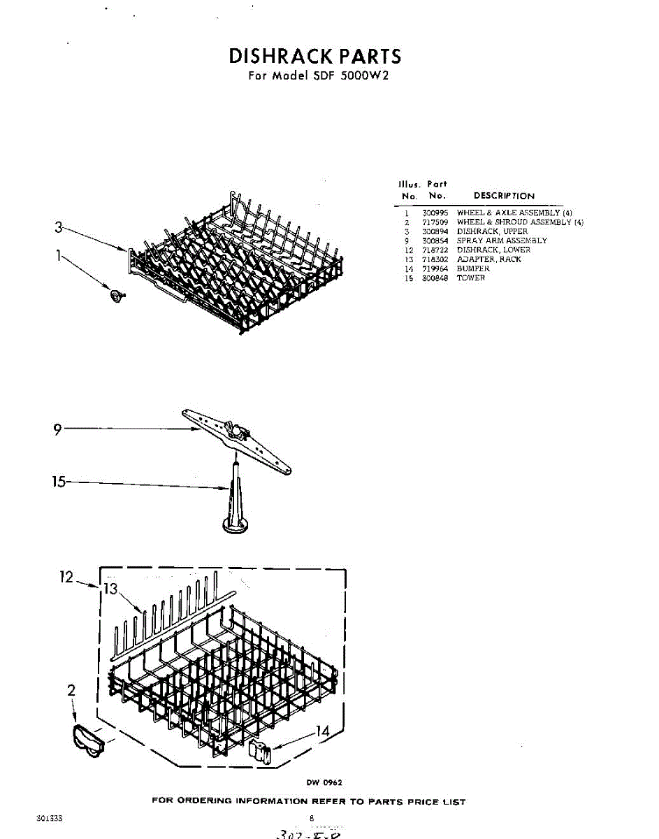Parts for Whirlpool SDF5000W2: 08 - Dish Rack Parts