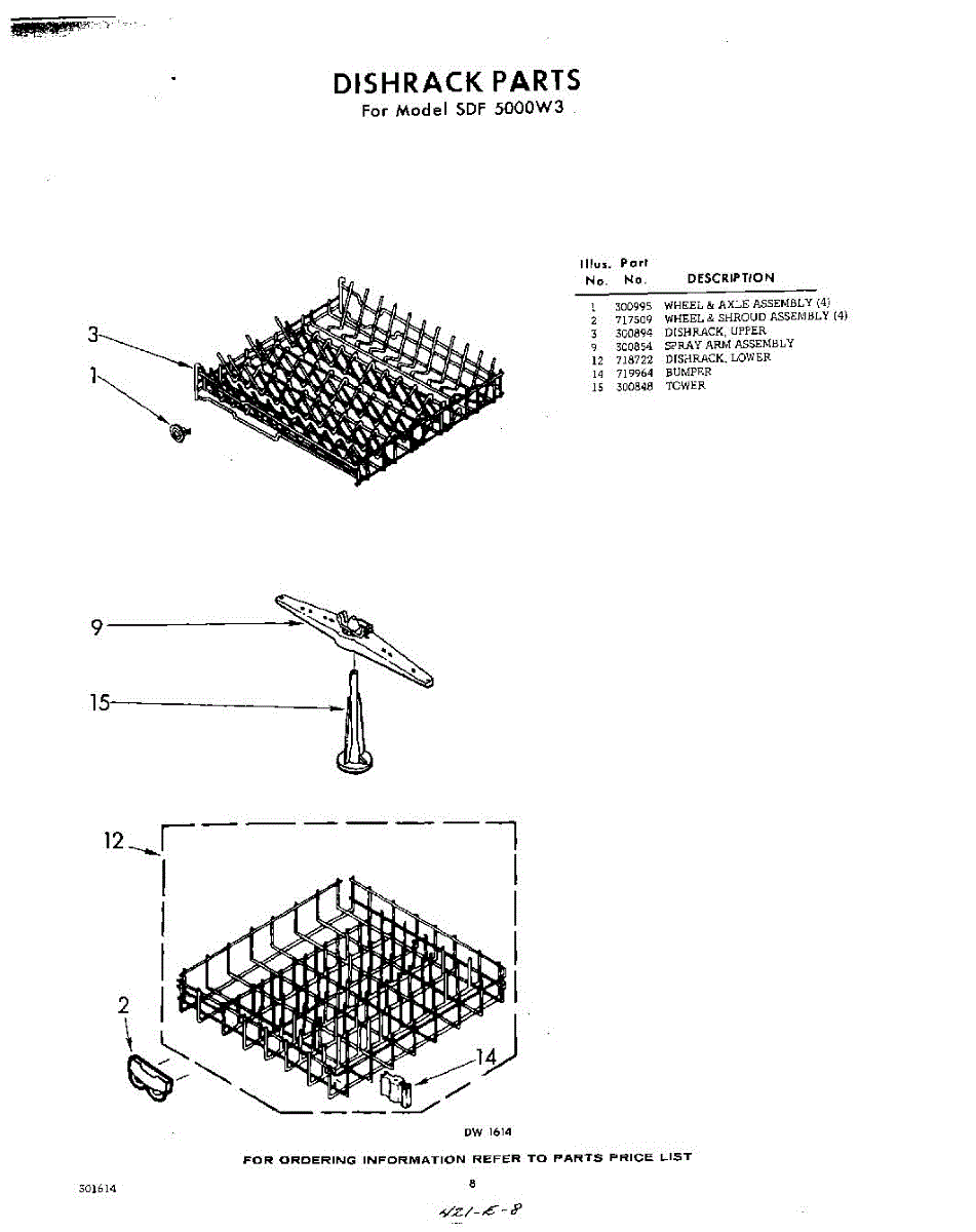Parts for Whirlpool SDF5000W3: 08 - Dish Rack Parts