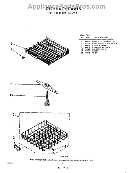 Parts for Whirlpool SDF5000W4: 08 - Dish Rack Parts