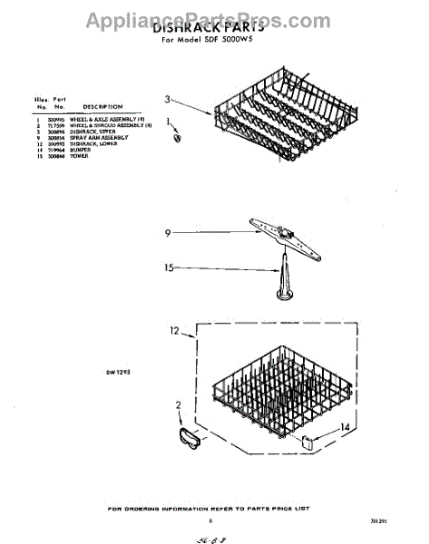 Parts for Whirlpool SDF5000W5: 08 - Dish Rack Parts